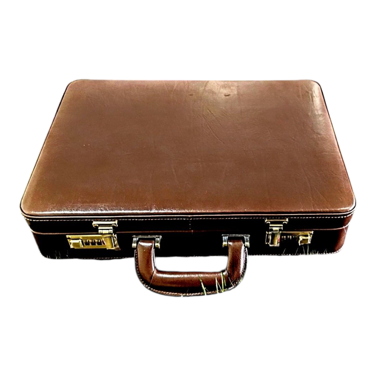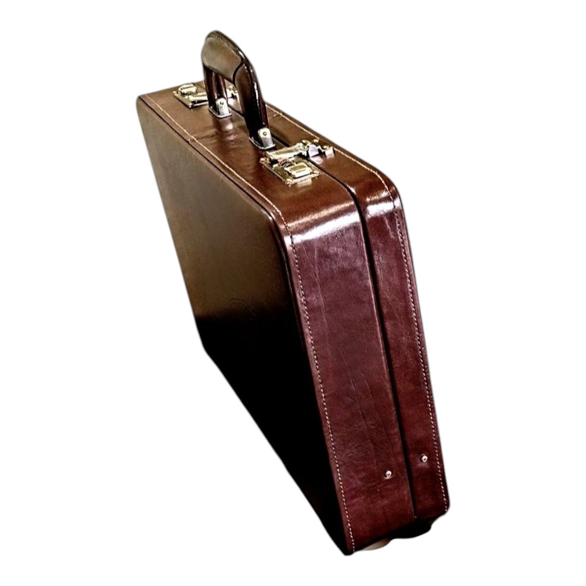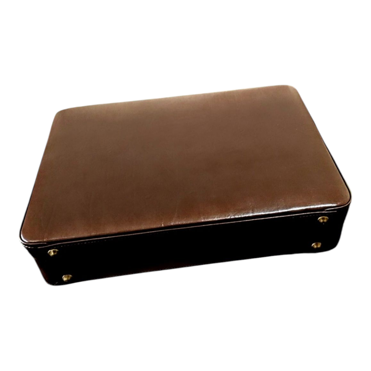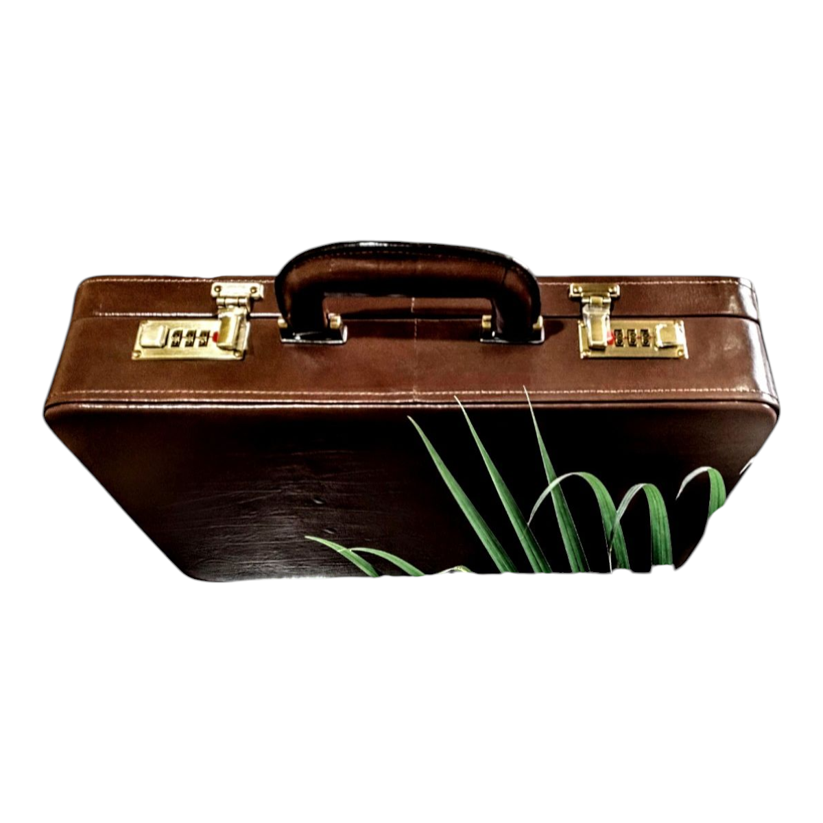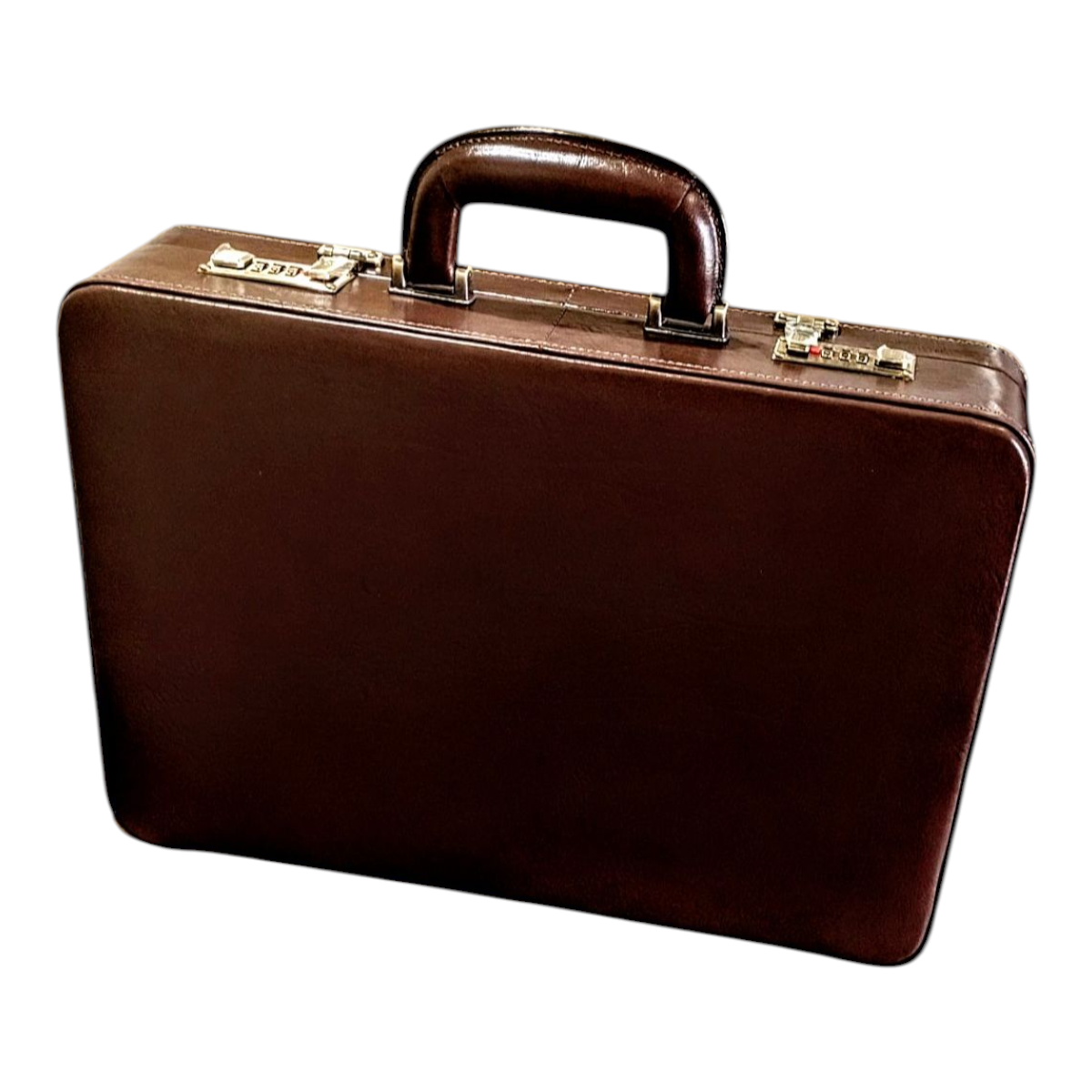 Maleta executiva em couro bovino estampa clasico café, forro veludo marrom, ferragens acabamento ouro velho, fechadura de segredo importada, espaço para notebook ate 15,6″, repartição para documentos, cartões, canetas, etc,,, 43x32x7,5 cm 2,17 kg